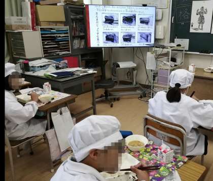 給食献立表にあった上手な食べ方を見ながら、上の身を取り外すと大きな骨が出てきました。
