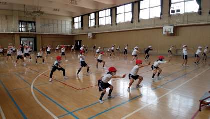 3年生は4年生に教えてもらいながら、一生懸命体を動かしていました。