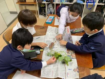 「アサガオの葉には毛があったけど、さつまいもの葉には毛が無い。」