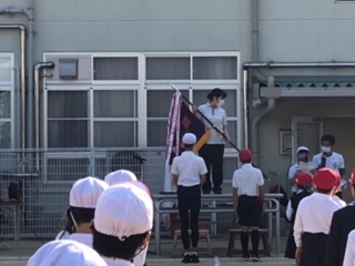6日に運動会を控えて、全学年で開会式・閉会式・応援合戦の練習をしました。