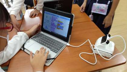 コーディーロッキーを動かしました。以前に4年生に教えてもらったことを思い出しながら、動かしたり止めたり、右折させたり、色々なプログラムを作りました。