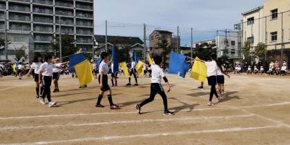 5・6年生のフラッグの演技「輝(かがやき)」の最後には、「90」の文字が浮かび上がりました。
