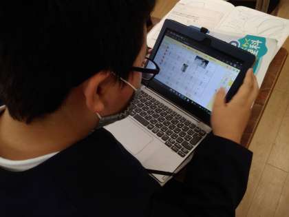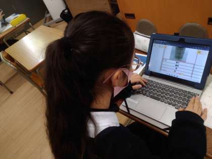 班ごとにコラボノートを使って、タブレットでとった写真をはり、素材や色、深さをまとめてもらいました。