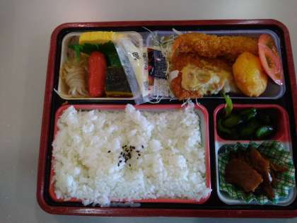 OPヨットが終わり、お腹がすいてきました! 海洋センターの方で、お弁当を用意していただきました。