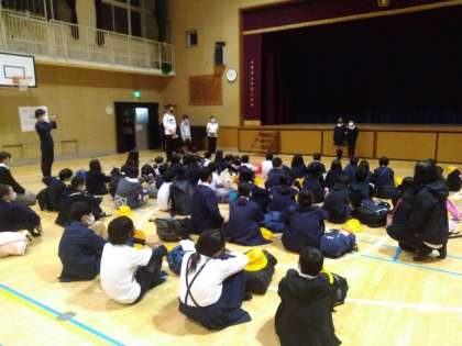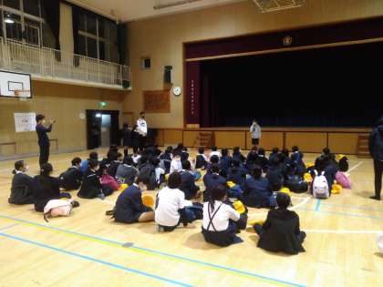 講堂で帰校式を行い、自然体験学習が終了しました。