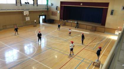 どんな攻め方をするのか話し合い、一人がタブレットでとり、アドバイスをしました。