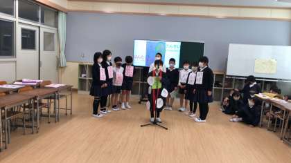 社会で学習した大和川のつけかえの劇と国語で勉強した大阪の方言を伝えました。