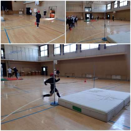 東成区の体力向上事業で外部の講師の方に高跳びを教えていただきました。
