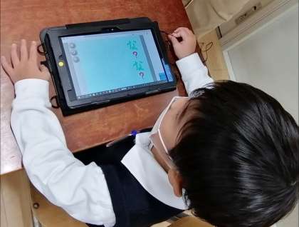 ひらがなの書き順通りにプログラムして、「ひらがな」と「?」を使ってクイズをつくりました。
