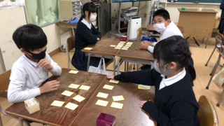 5色百人一首カルタで、20枚の百人一首を2人で取り合います。