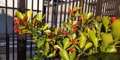 校庭周りの植え込みには、いっぱい赤い実がなっています。