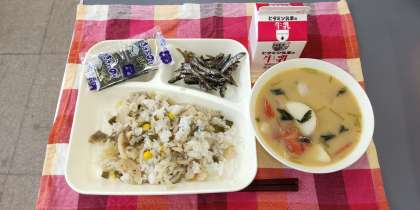 <牛乳 れんこんのちらしずし ぞう煮 ごまめ>