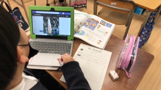 teamsにあげていたヘチマの写真を拡大してみて、ワークシートに記録しました。
