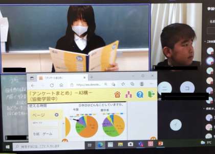 今日は、両校のアンケート結果からわかったことや思ったことを報告しました。