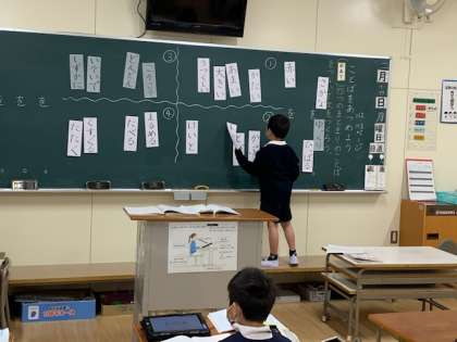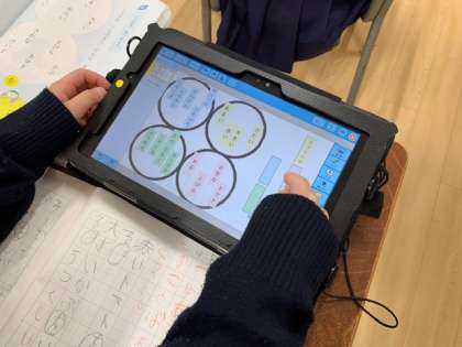 今日は教科書に載っている言葉を使って、文作りをしました。タブレットを使って、何度も言葉を並べ替えながら考えていました。