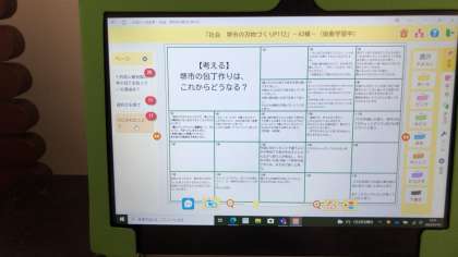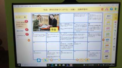 これからの堺市の刃物は、どうなっていくのか、みんなで考え、コラボノートに書いて発表しました。