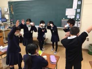 教科書の理科の広場で、「クモのす糸電話」が紹介されていたので、みんなやってみたいということになり、やってみました。3人、4人と人数を増やしてやってみました。6人でやってもちゃんと聞こえたので、みんな大喜びでした。