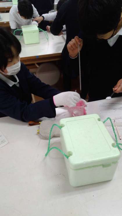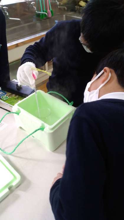 やけどに気をつけながら、ビーカーを湯せんして、水よう液の温度を高くしました。