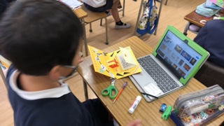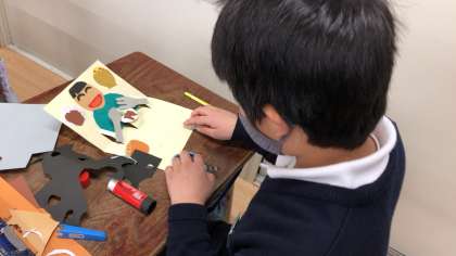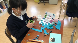画用紙に切り込みを入れ折り出すと、とび出すしかけの完成です。