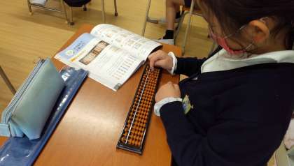 短い時間でしたが、算数の時間にそろばんの学習をしました。