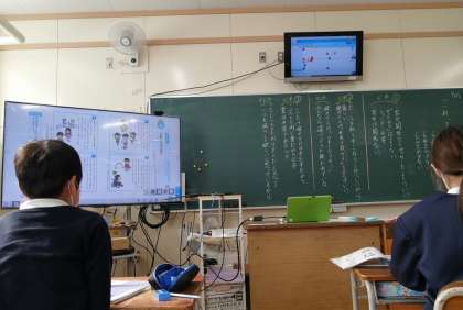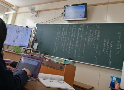 その後、教材をもとに4つの場面について、タブレットを活用して、意見を交流しながら考えていきました。
