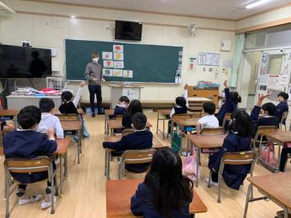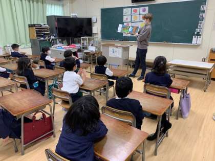 1年生の教室に、C-NETのマイケル先生が来てくださいました。