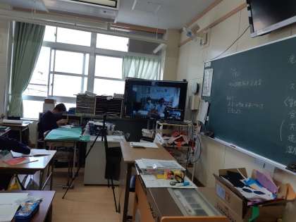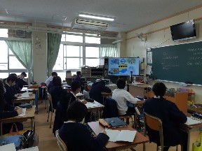 奄美大島の大和村立今里小学校とそれぞれの町の魅力、課題解決策を交流しました。