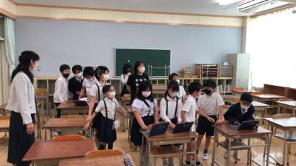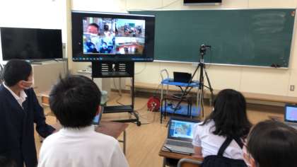 昼休み、チーム今里小の4校と遠隔交流をしました。