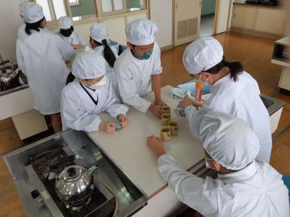 茶葉をはかって、お湯を沸かし、お茶をいれます。