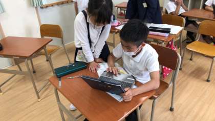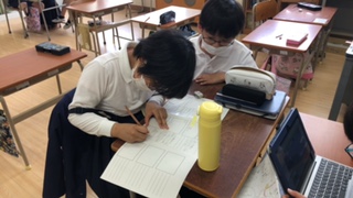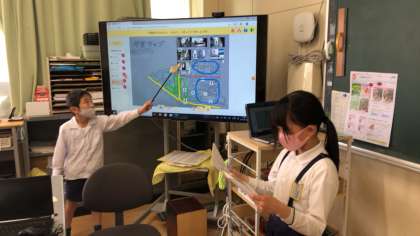 コラボノートに貼りつけた写真と説明用に書いたワークシートを元に発表の練習をしました。