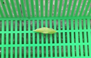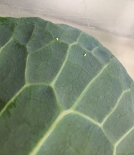 4月6日にキャベツの葉の裏についていたモンシロチョウのたまごを見つけました。