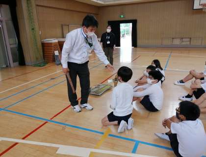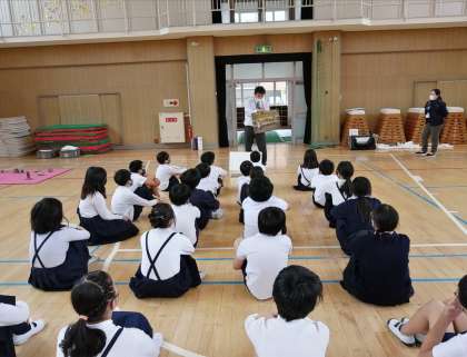 大阪府立弥生文化博物館による出前授業「楽しい考古学ー弥生時代の生活」がありました。