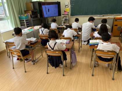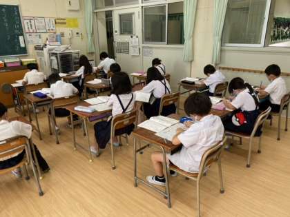 グー(机とお腹の間はグー1つ分)、ペタ(足の裏は床にペタ)、ピン(背筋ピン)のいい姿勢で書けましたね。