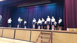 どのクラスもよくあいさつができていたので、表彰状をおくります。