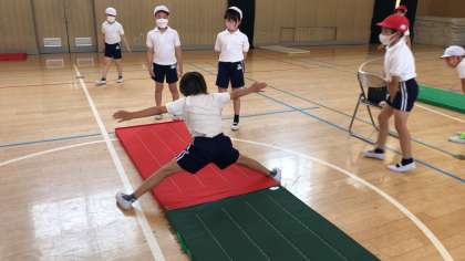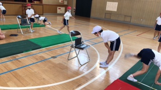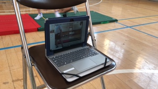 遅延再生アプリを使って、開脚前転の確認をしました。