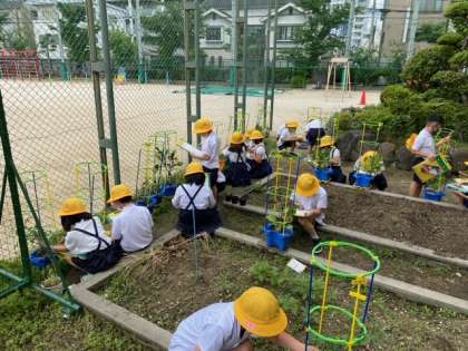 花が増えたり実が大きくなったり、日に日に大きく成長する野菜を見て、大喜びな2年生でした。