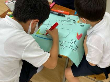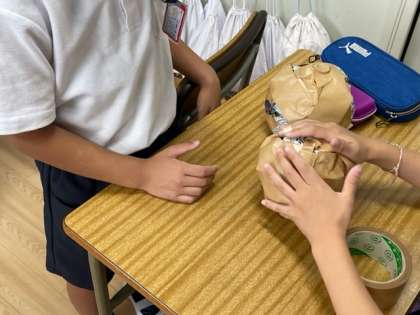 縦割り班で、土曜日の今里まつりの準備をしています。