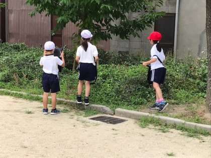 子ども達は公園の隅々まで観察していました。