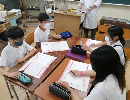 ロッテ方を講師に招き、ロッテのおかしづくりをヒントに、新たなおかしを考えました。