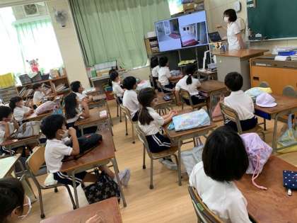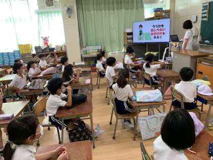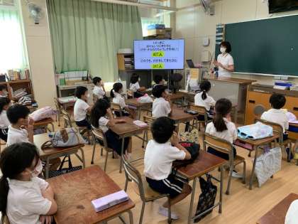 発育測定の前に、保健の先生から「けがをふせごう」のお話を聞きました。