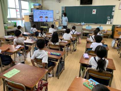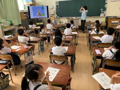 保健室の先生に、手洗いの大切さを教えてもらいました。
