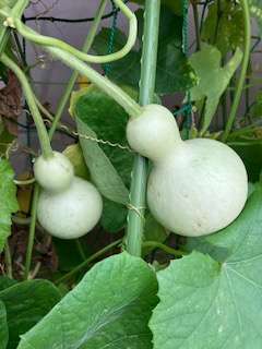 ヘチマとヒョウタンです。ツルレイシは残念ながら1学期に枯れてしまいました。