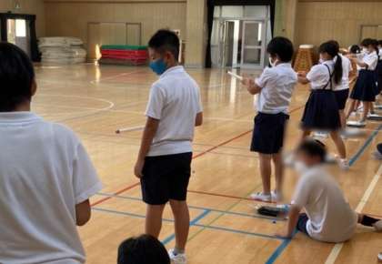 「閉じ込めた空気や水」の学習で、空気でっぽうで玉を飛ばす活動をしました。