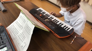 キーボード、リコーダー、鉄琴、木琴、小太鼓、大太鼓の6つのパートに分かれて合奏しようと思います。