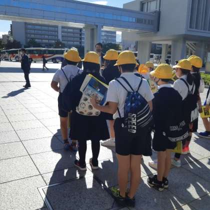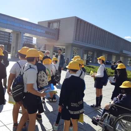 ボランティアガイドさんによる平和記念公園の散策をします。