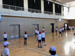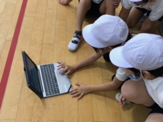 4年グループのおどりを3年がタブレットに録画し、自分たちの踊る様子を確認しました。