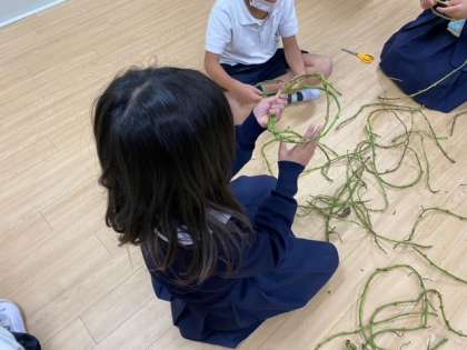 サツマイモのつるでリース作り(2年)