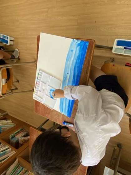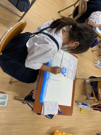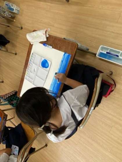 図工 絵の具でグラデーション(2年)