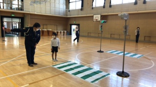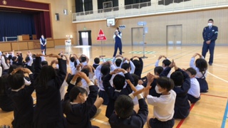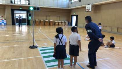 一年生から三年生まで、講堂で横断歩道の歩行の仕方の勉強をしました。