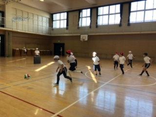 パスをつないで相手ゴールまで行き、的に当たると点が入るというゲームです。